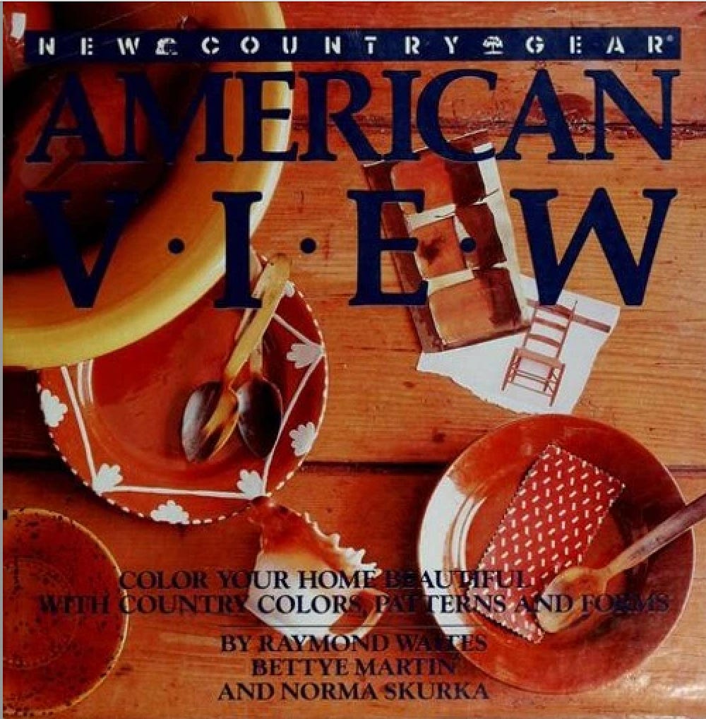 The brand began with a coffee table book: American View: New Country Gear, published in 1984 and credited to Raymond Waites with Bettye Martin and Norma Skurka. There are a million interior design books from that era that will tell you how to display patterned plates, but what drew me in wasn’t just the book itself, it was the business Waites built around it.